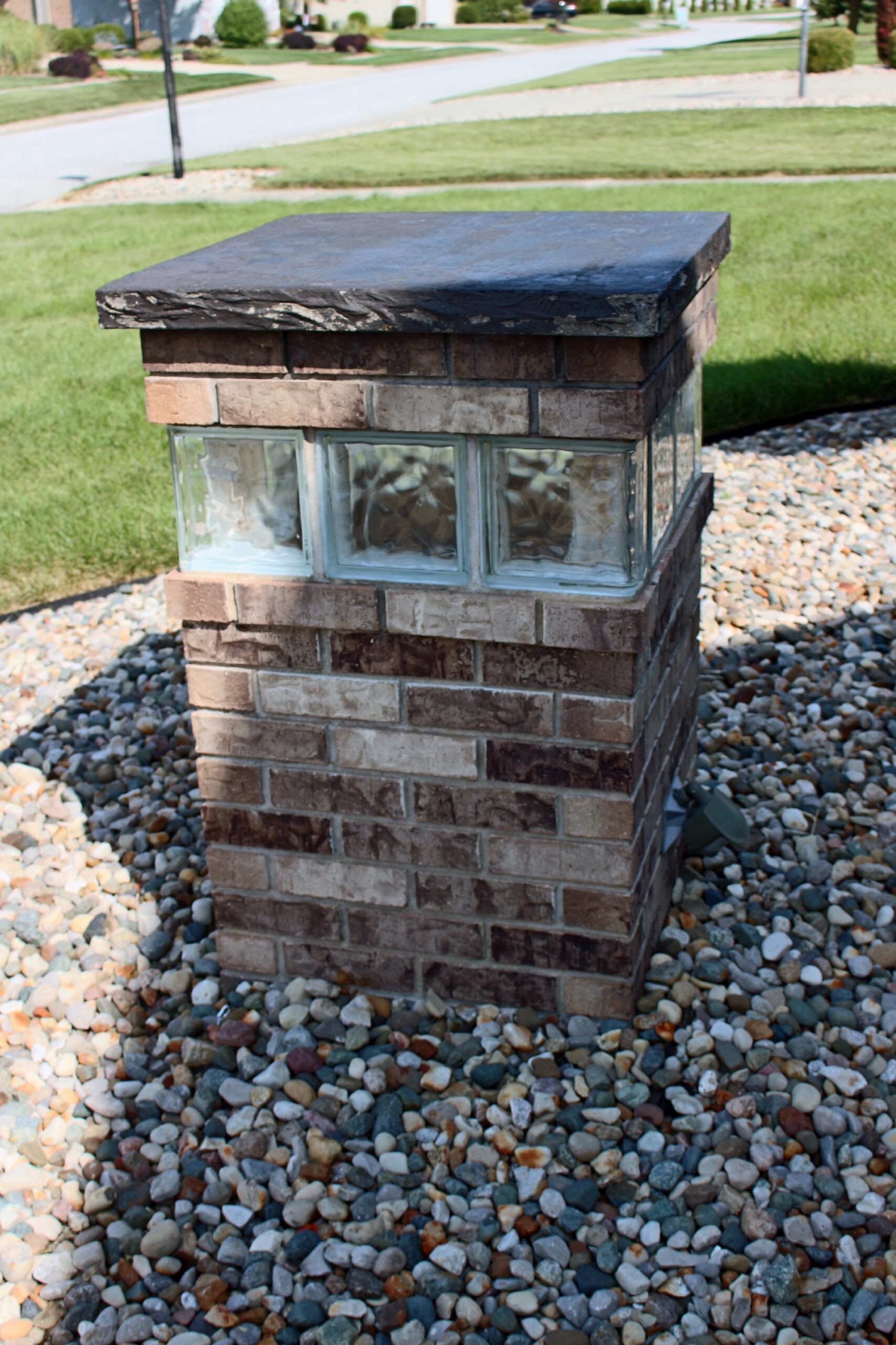 To lite the front entrance and walkway there is a custom-built brick light house with its own timer to seasonally adjust lighting settings. Also included is 2nd additional solid-cement light house top in a different style and color than current one installed.