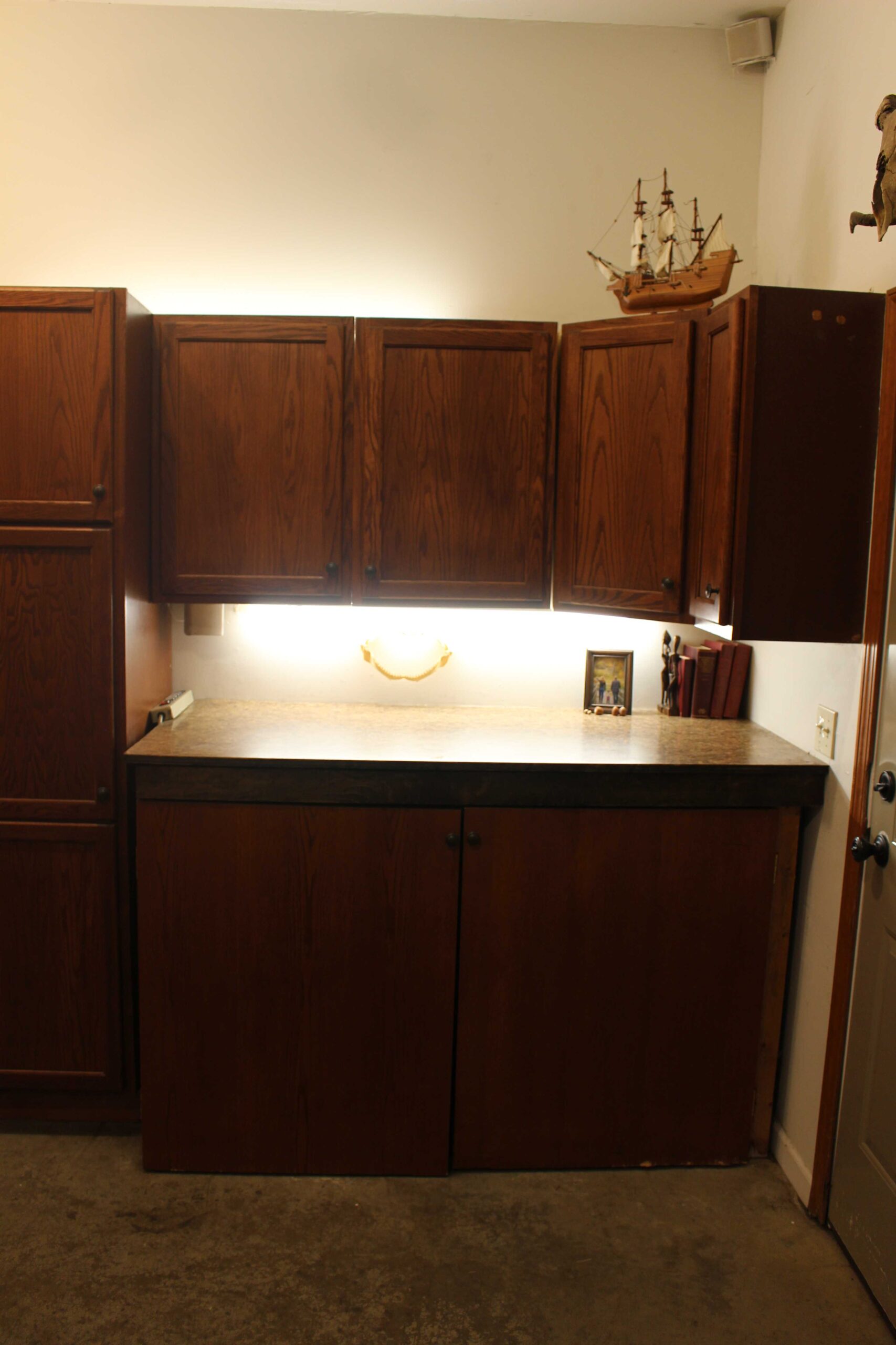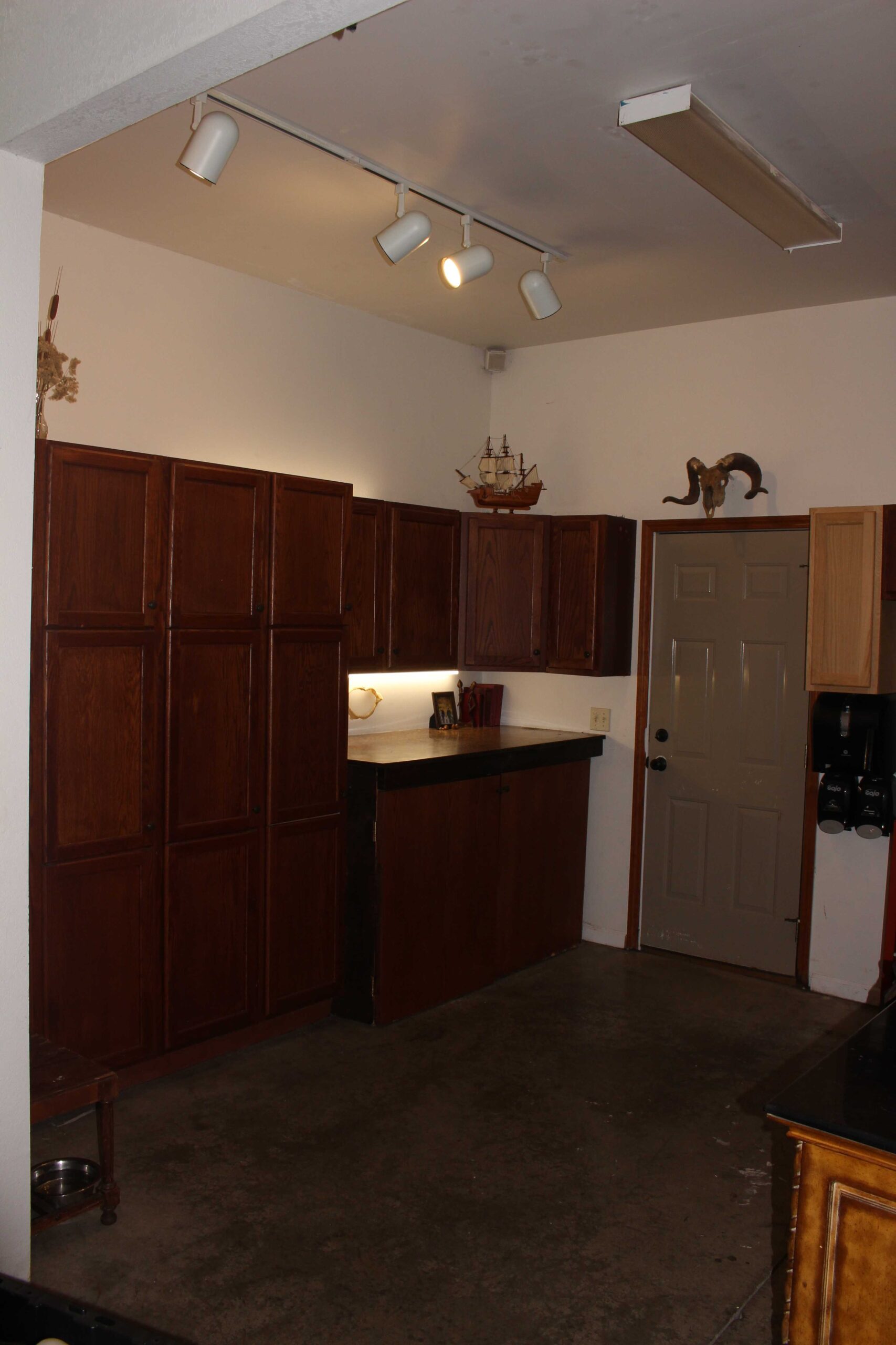The spacious 25 x 29 extended 3 car garage has 12-foot ceilings, an ample storage cabinets and broom closets, countertops and extra lighting. The 3rd car bay has an additional 8 feet in length to it. The built-in upright freezer can stay,
